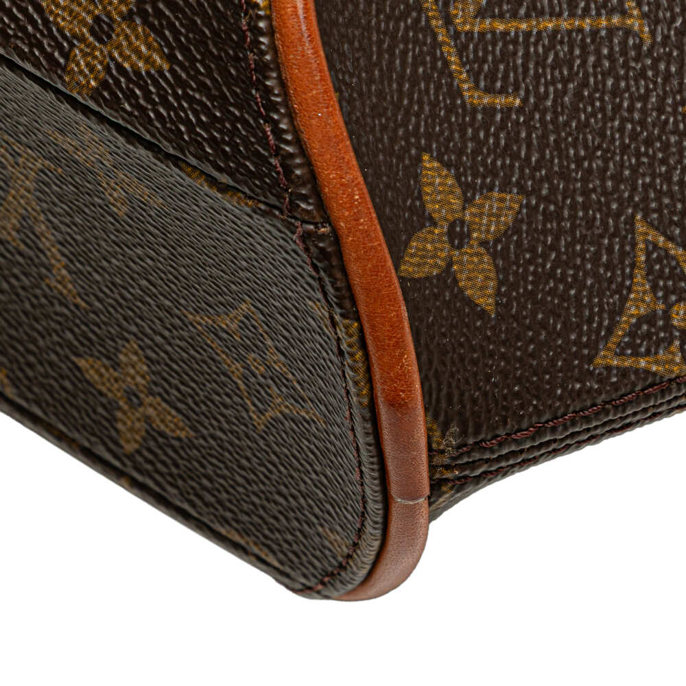 Description: Louis Vuitton Ellipse Bag featuring a structured silhouette and iconic curved shape. Crafted in coated monogram canvas with natural vachetta leather trim. Designed with a top zip closure, brown fabric-lined interior with slip pocket, and rolled leather handles. The handles have been professionally re-glossed, preserving a refined appearance.
